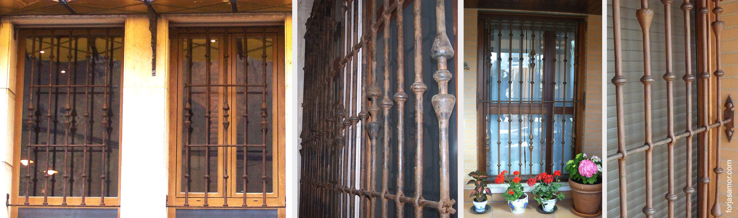 Ejemplos de rejas ensambladas de balaustres con hembras verticales, fabricadas por Forjas Amor.