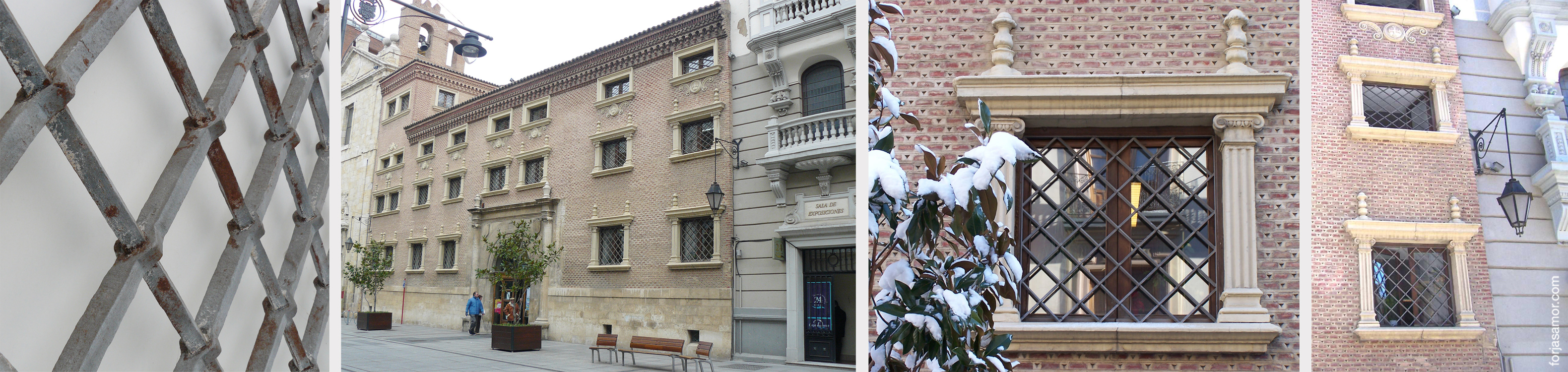 Otra forma característica de las rejas ensambladas son las llamadas rejas modelo Convento, realizadas con barrotes de sección cuadrada con uniones machihembradas en rombo. Ejemplo de rejas fabricadas por Forjas Amor, para la restauración de la fachada del convento de las Agustinas Canónigas de principios del s. XVII (Palencia).