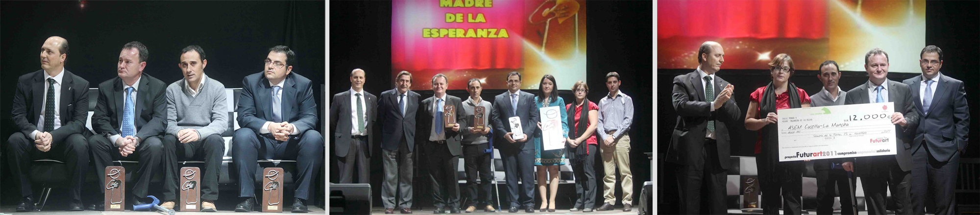 En el transcurso de esta gala benéfica la Fundación Futurart hizo entrega a la asociación ASEM-CLM de la aportación económica recaudada por sus socios durante este 2011, y que ascendió a 12.000 euros. Begoña Martín, presidenta de ASEM, recalcó la importancia que tiene en la actualidad que los empresarios se comprometan con la sociedad y con causas altruistas. Por su parte, el presidente de la Fundación, José Luis Bodas, hizo hincapié en el calado humano que tiene el trabajo de la Fundación con todas y cada una de las asociaciones que durante los nueve años de existencia de este Proyecto Empresarial Solidario han sido benericiarias de su aportación económica.