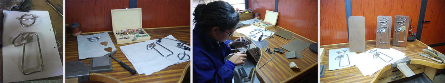 Para el corazón, Inmaculada tenia dos opciones, rojo como en el imagotipo, simbolizando el amor, pasión y entrega por lo que se hace y dorado, símbolo de tener un corazón de oro, solidaridad y generosidad. El dorado destacaba de la pieza y a la vez unía los dos acabados en hierro, así que optó por hacer el corazón en latón.